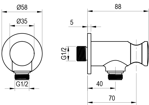 Podomietkový vývod s držiakem sprchy. Vo vyhotovení lesklý chróm.