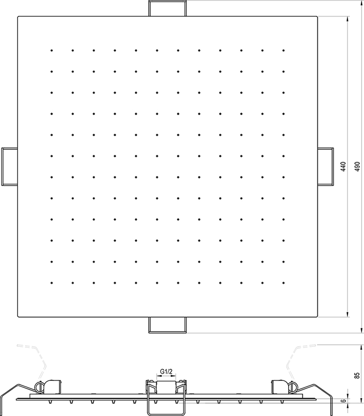Komfort stropnej hlavovej sprchy v slim dizajne v štvorcovom prevedení. Jednoduchá montáž do stropu alebo do podhľadu. Súčasťou balenia je pružná hadica s dĺžkou 400 mm s kovovým opletom na napojenie a 4 pružné úchyty na uchytenie hlavovej sprchy. Na vonkajšie čistenie odporúčame používať prípravok Ravak Cleaner Chrome.