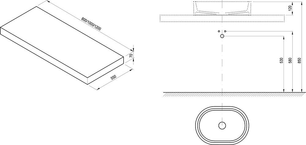 Doska I sa na stenu upevňuje pomocou klasických konzol, ktoré sú súčasťou balenia. Otvor pre umývadlo nie je predvŕtaný. To umožňuje umiestniť umývadlo napr. Formy alebo Moon podľa vlastnej potreby.