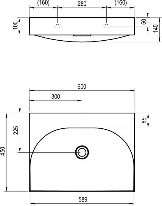 Ravak Umyvadlo Lite 45, bez otvoru pro baterii, bez přepadu bílá