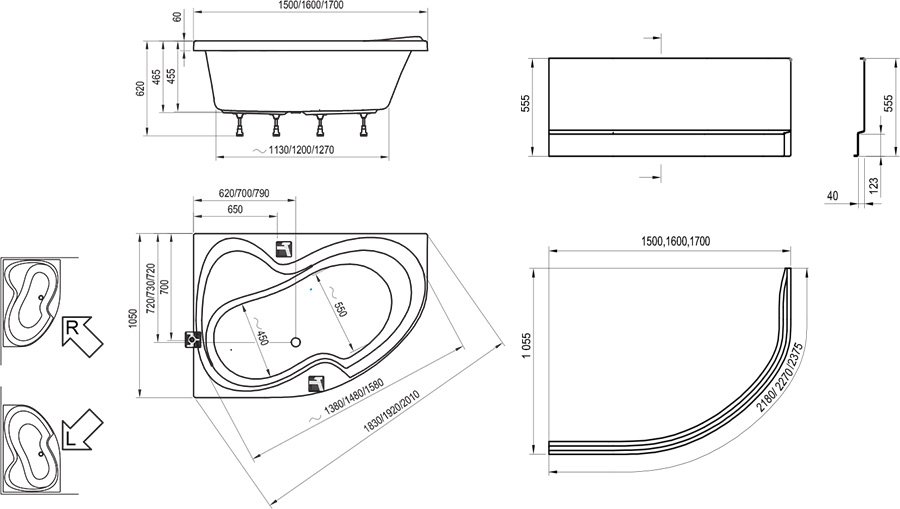 - Doplňky k dokoupení: podpora, čelní panel, vanový odtokový komplet,