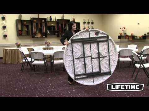Velice prostorný skládací stůl z extrémně odolného polyethylenu; imunní vůči UV záření, ocelová nosná kostra, deska o síle 57 mm a průměru 152 cm.