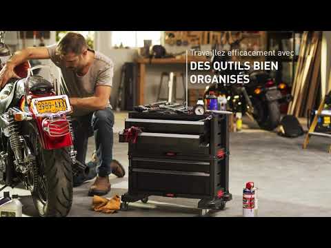 Plastový dílenský vozík s pěti zásuvkami nabízí úložný prostor pro velké množství nářadí. Obsahuje jednu hlubokou zásuvku s odnímatelnými přihrádkami. Další čtyři zásuvky slouží pro uložení drobnějších nástrojů a příslušenství. Jedna ze čtyř menších zásuvek je vybavena 16 vyjímatelnými organizéry. Všechny dělící příčky v zásuvkách lze snadno vyjmout a vytvořit tak volný prostor pro větší nástroje.