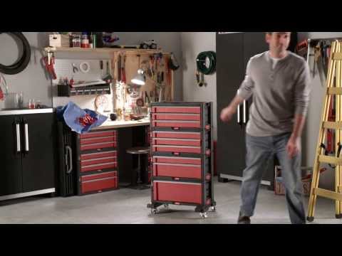 Plastový dílenský vozík se šesti zásuvkami nabízí úložný prostor pro velké množství nářadí. Obsahuje dvě hluboké zásuvku s odnímatelnými přihrádkami. Další čtyři zásuvky slouží pro uložení drobnějších nástrojů a příslušenství. Jedna ze čtyř zásuvek je vybavena šestnástimi vyjímatelnými organizéry. Všechny dělící příčky v zásuvkách lze snadno vyjmout a vytvořit tak volný prostor pro větší nástroje.