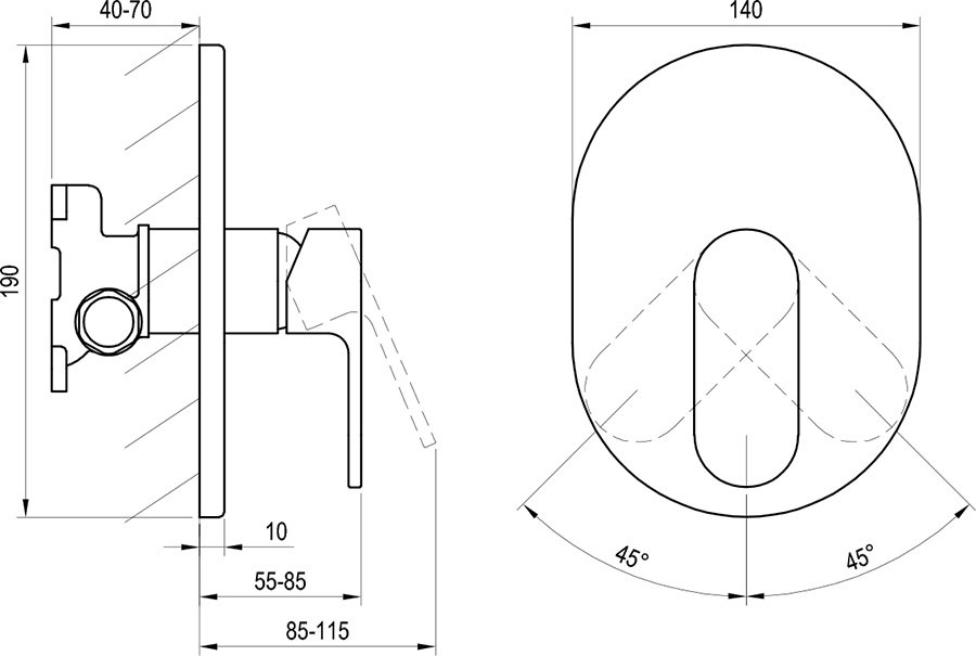 Podomietková termostatická batéria ušetrí ďalšie centimetre priestoru, pretože na stene zostane len to, čo je potrebné pre ovládanie vody. Telo je skryté v stene. Prepínač mení režimy. Batéria udržuje stabilnú teplotu.