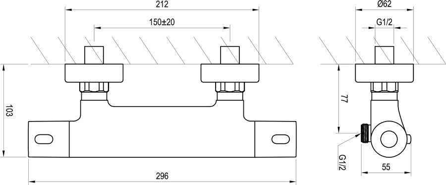 Termostatická nástenná sprchová batéria Termo, bez sprchového setu. V chrómovom vyhotovení. Nastavenie stálej teploty vody.