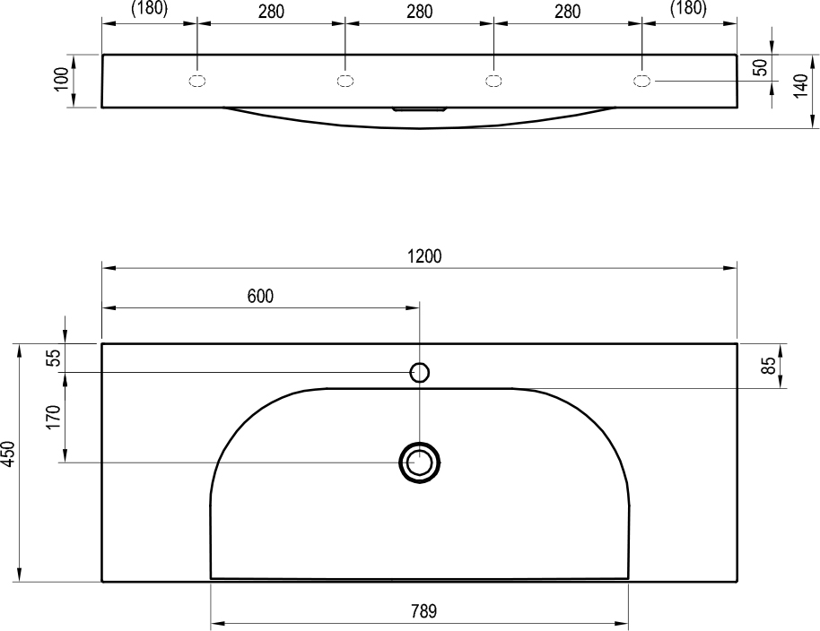 Foto - Ravak Umývadlo Lite 120/80 S, s otvorom pre batériu, bez prepadu