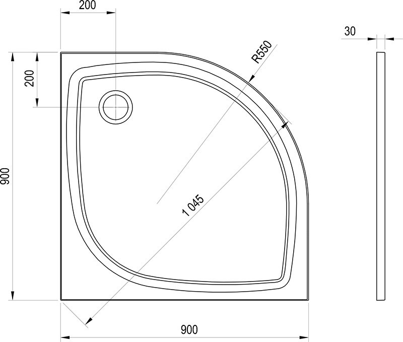 Štvrťkruhová sprchová vanička Elipso Pro Flat z liateho mramoru v bielej farbe. Hladký povrch pre jednoduchú údržbu.